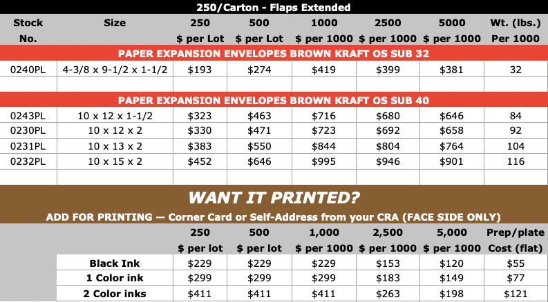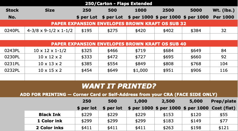 Paper Expansion Envelopes Brown Kraft (Open on long dimension)
