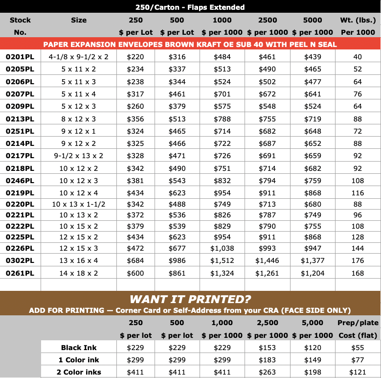 Paper Expansion Envelopes Brown Kraft (Open on short dimension)