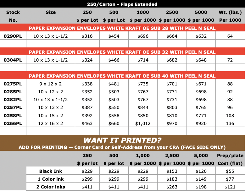 (10 x 13 x 1-1/2 size also available in SUB 28 and 32, 100% RECYCLABLE) - OPEN END (“catalog”, opens on short dimension)