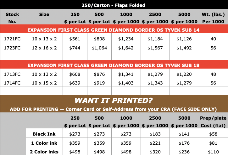 Tyvek Expansion First Class Green Diamond Border (open on long dimension)
