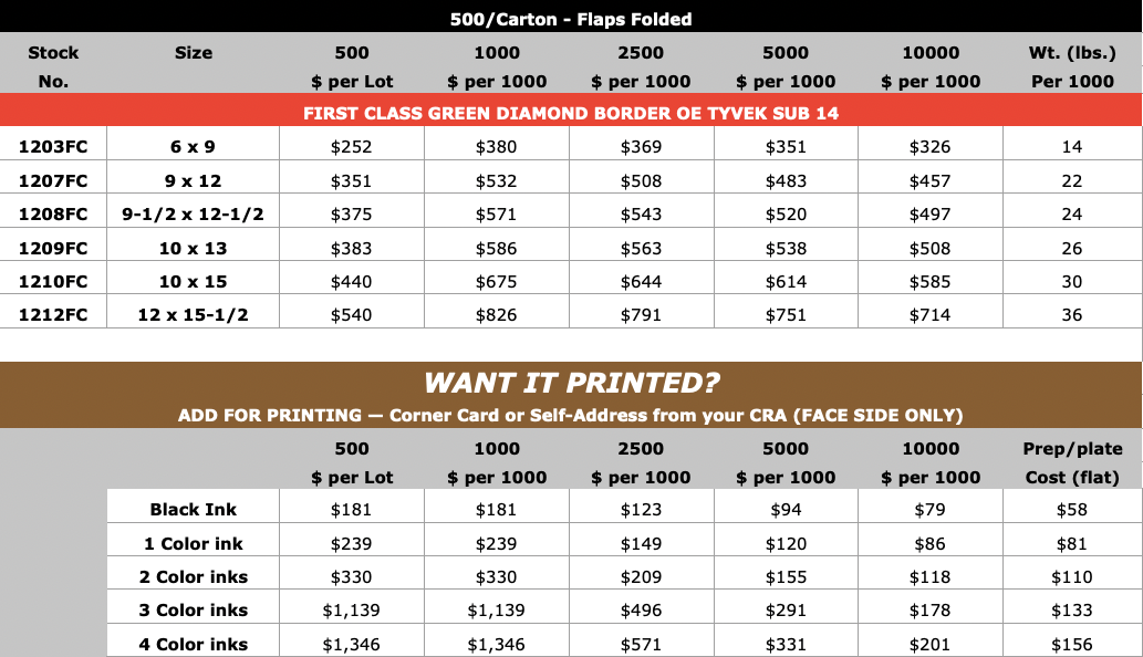 Tyvek Flat First Class Green Diamond Border (open on short dimension)