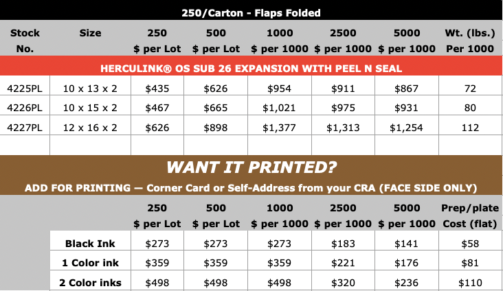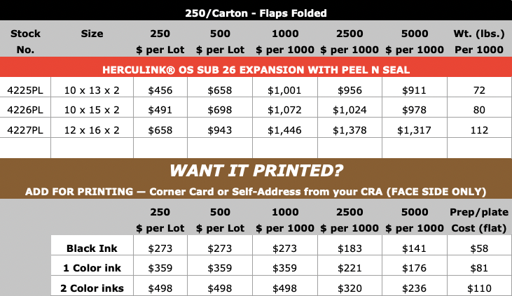 Herculink® Expansion Envelope Peel n Seal (open on long dimension)