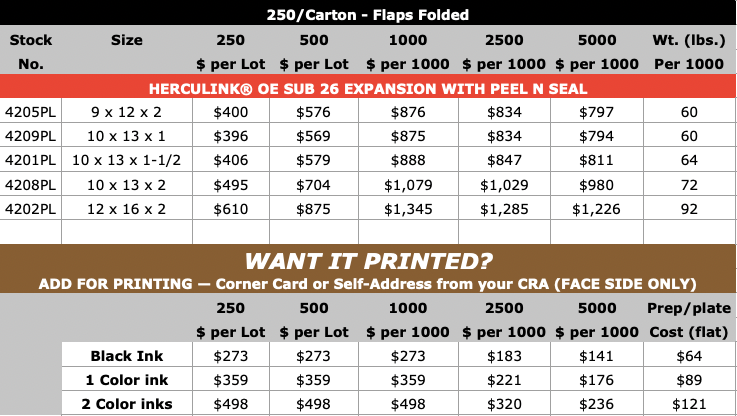 Herculink® Expansion Envelope Peel n Seal (open on short dimension)