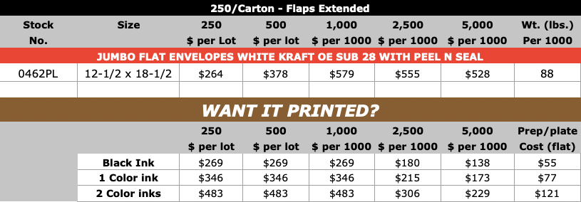 Jumbo Flat Envelopes White Kraft Sub 28 Peel n Seal