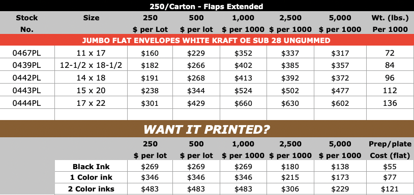 Looking for a cost-effective replacement for a shipping box or carton? These JUMBO size envelopes are large enough for mailing shirts, trousers, jackets and everything in-between. You’ll need your own supply of cellophane tape or a pot of glue, however, as these seal flaps are un-gummed. Save on printing costs by using shipping labels that you already have on hand.