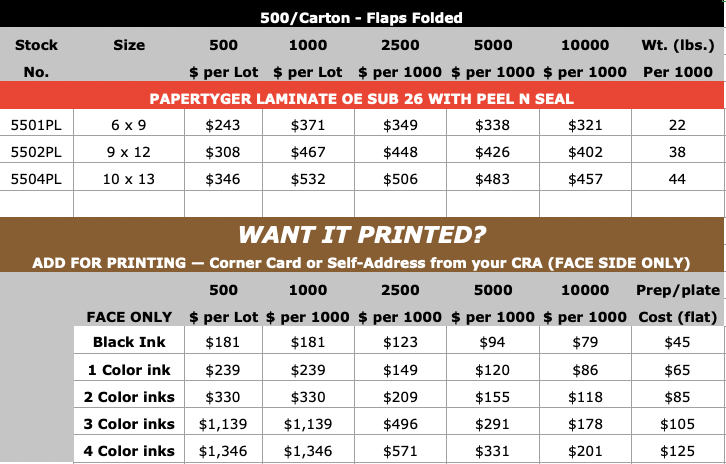 PaperTyger® Laminate High-strength Envelope Peel n Seal (Open on Short dimension)
