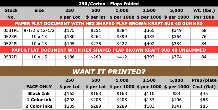 Paper Document Envelopes Brown Kraft Hex Shape Flap