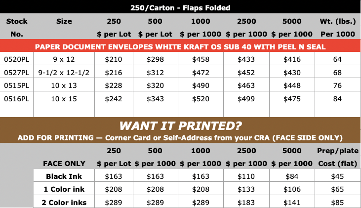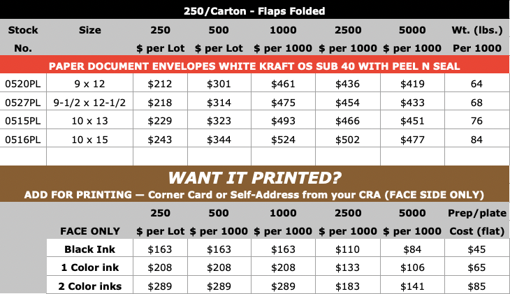 Paper Document Envelopes White Kraft (Open on long dimension)