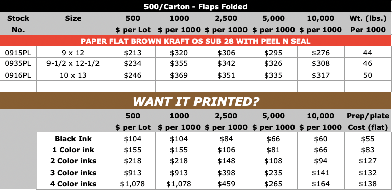 Paper Flat Brown Kraft Peel n Seal (open on the long dimension)