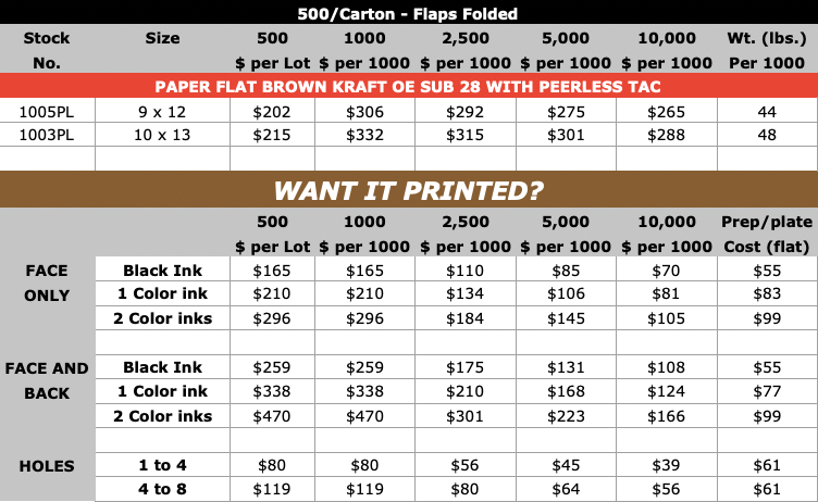 Paper Flat Brown Kraft Peerless Tac (open on the short dimension)