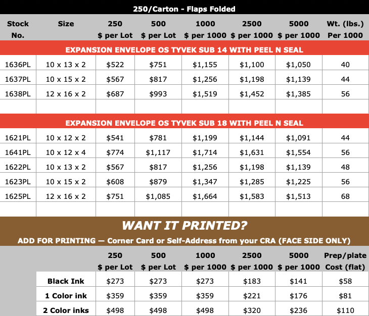 Think of these Tyvek® expansion envelopes as offering chain link fence protection to the contents. They are perfect for transporting, shipping or mailing material that is too thick for a flat mailer. Either 14 or 18 sub has more strength than is necessary for total protection against anything except crushing. The peel and seal closure is tough as nails. Save on printing costs by using labels that you already have on hand.