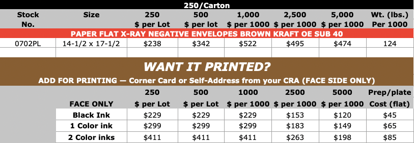 Paper Flat X-Ray Negative Envelope Brown Kraft